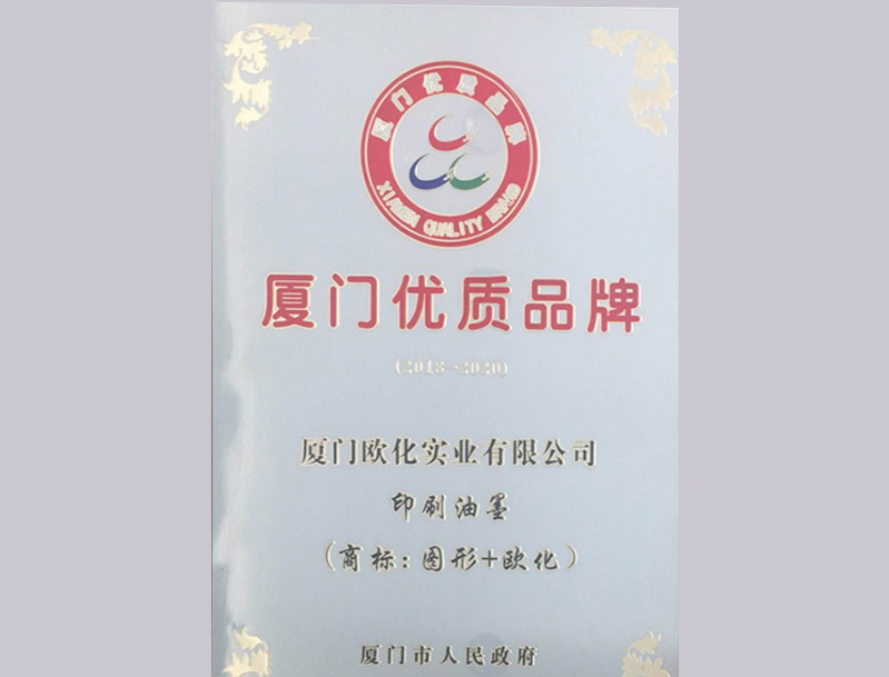 近日,厦门市人民政府发布了2018年度厦门优质品牌通知,根据《厦门优质品牌管理办法》相关规定,经评审决定授予厦门欧化实业有限公司印刷油墨2018年度“厦门优质品牌”称号。